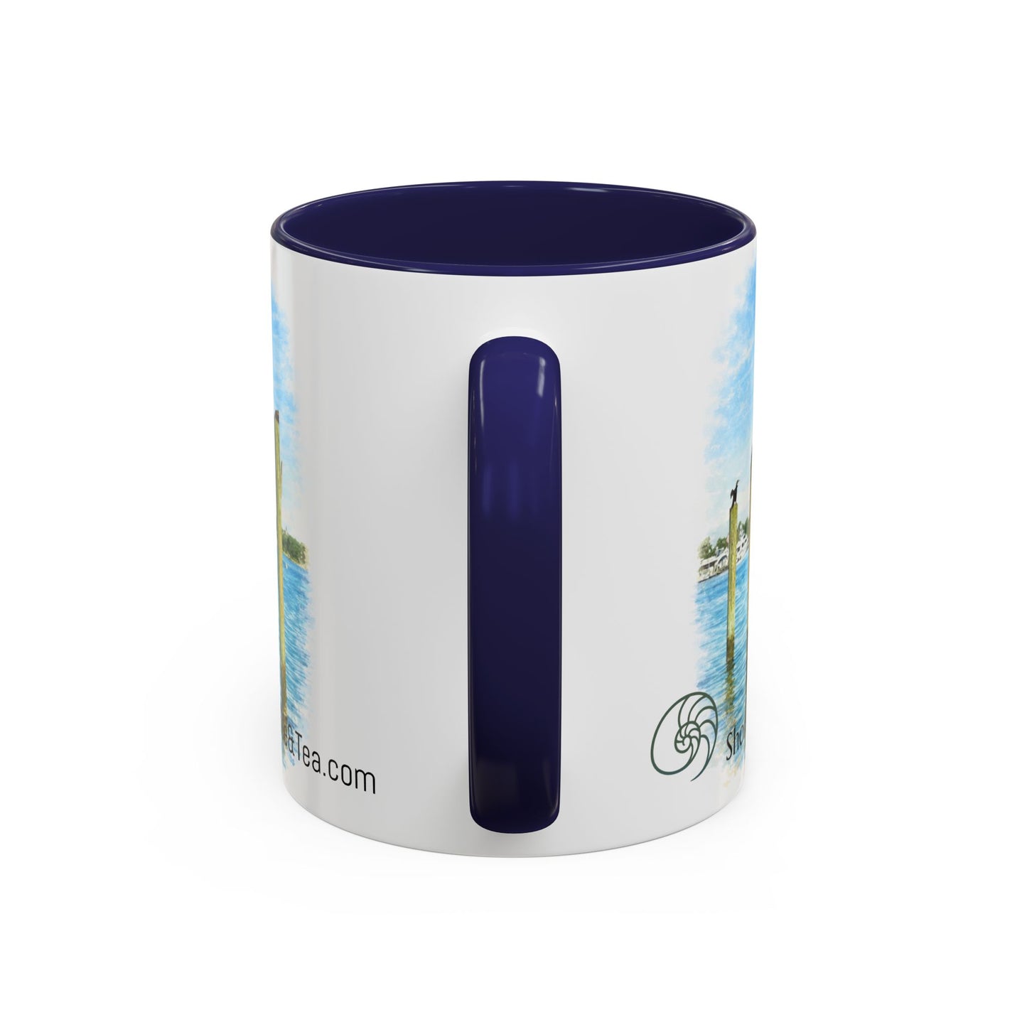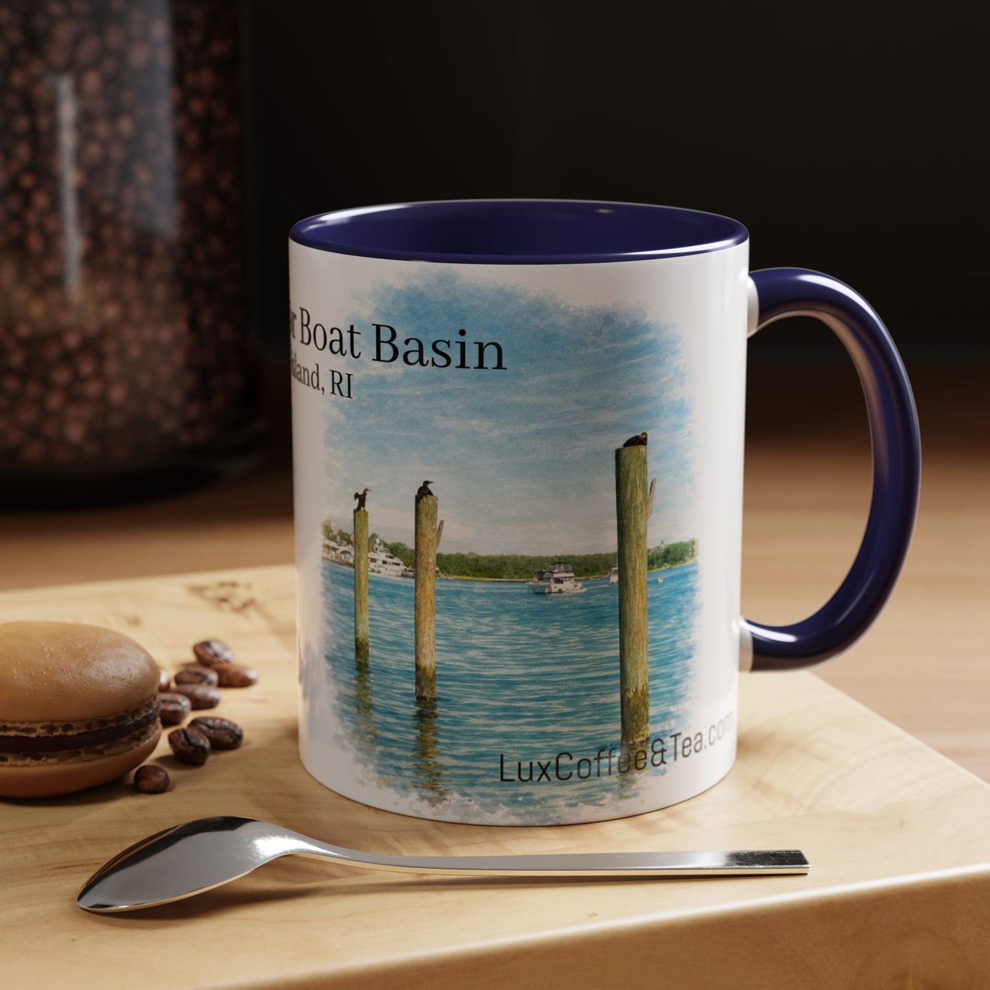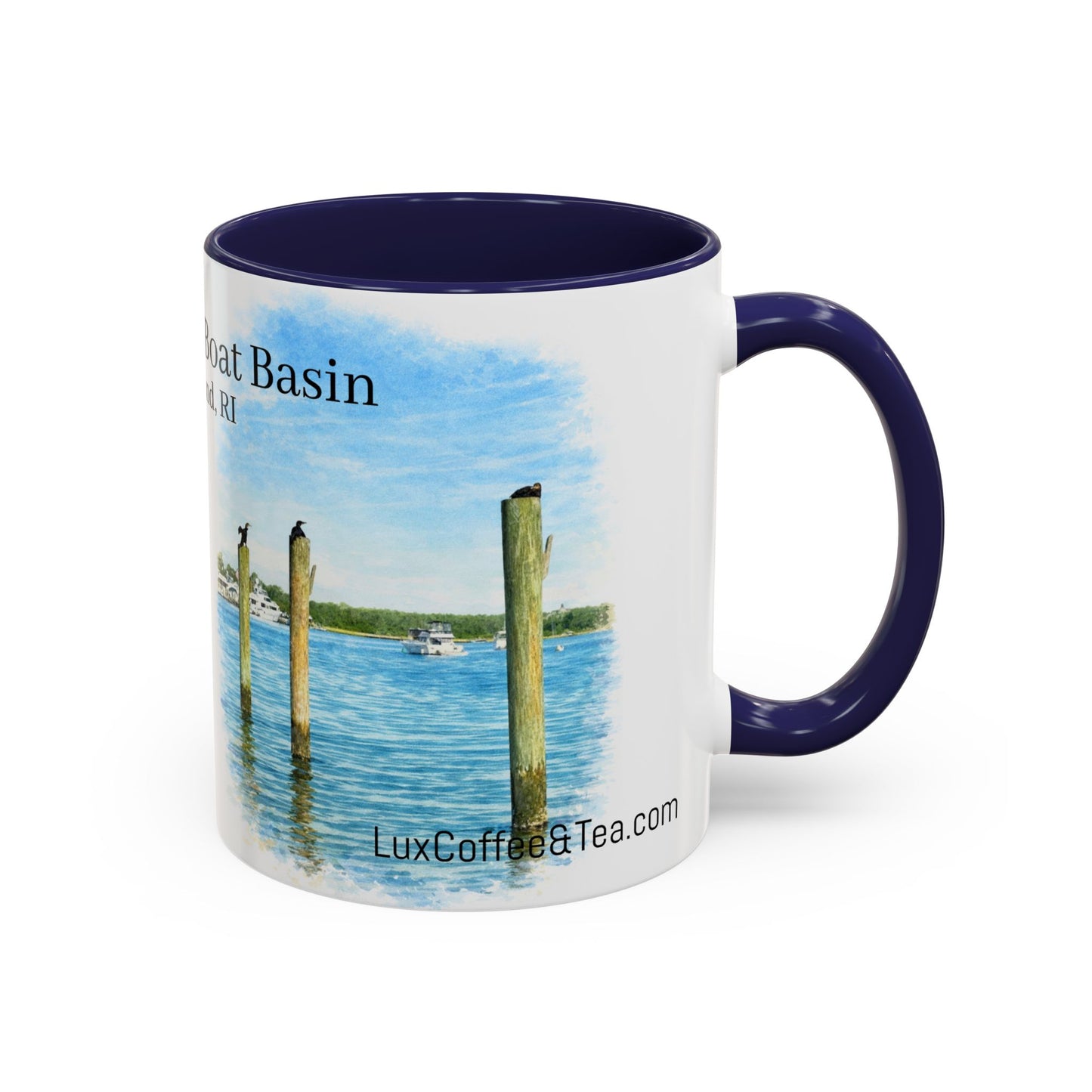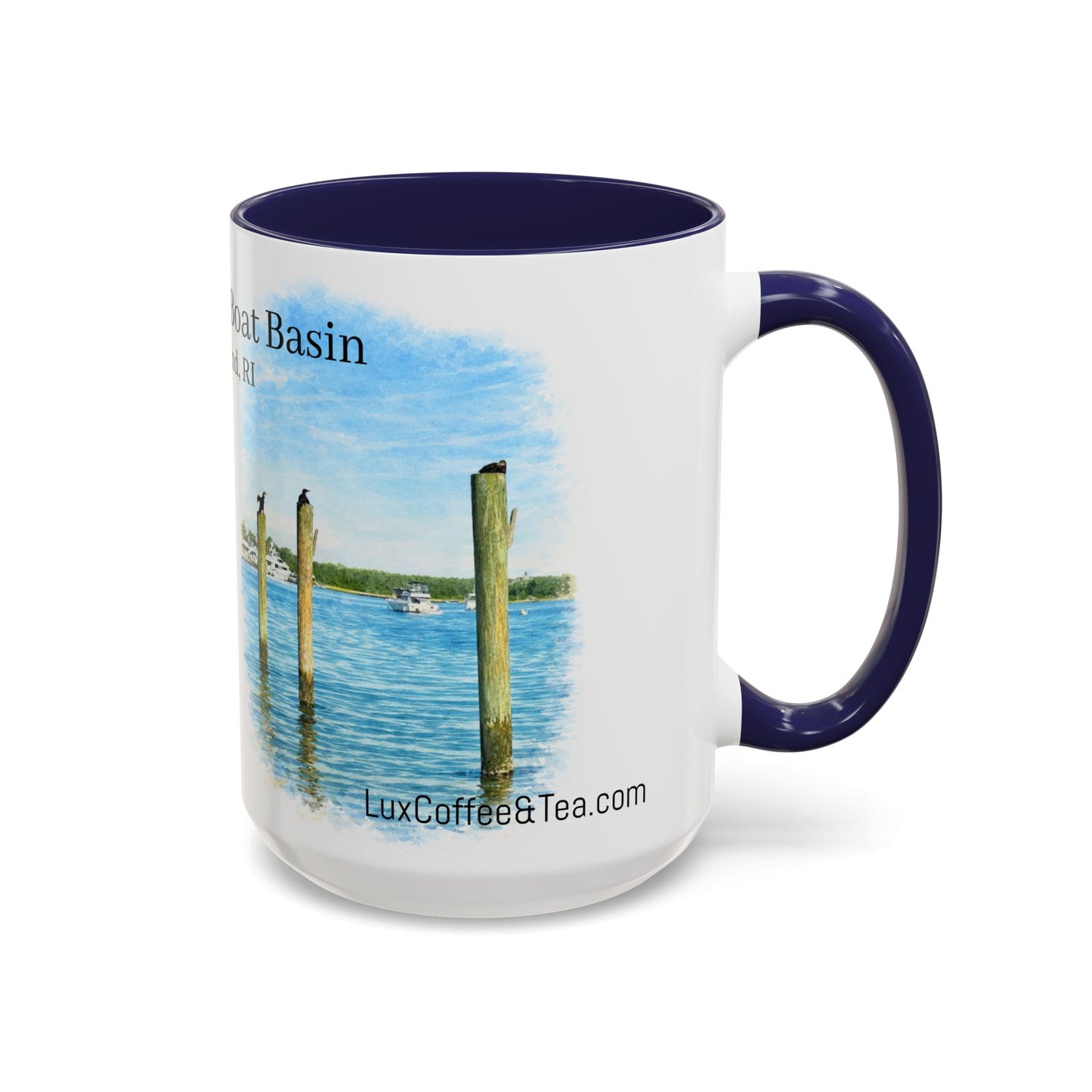LUX Coffee and Tea Shorelines Cormorants at New Harbor Boat Basin Block Island, RI Accent Mug (11oz /15oz)