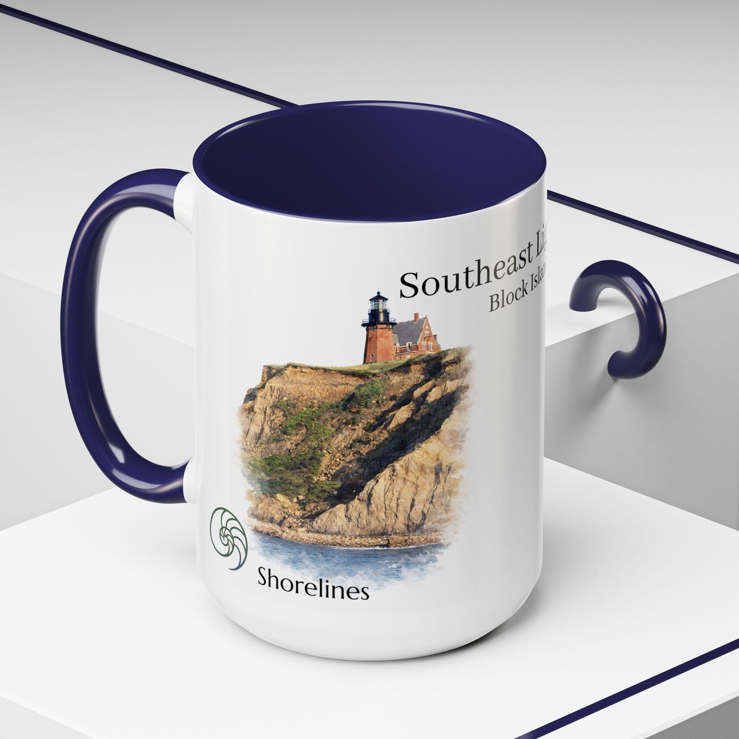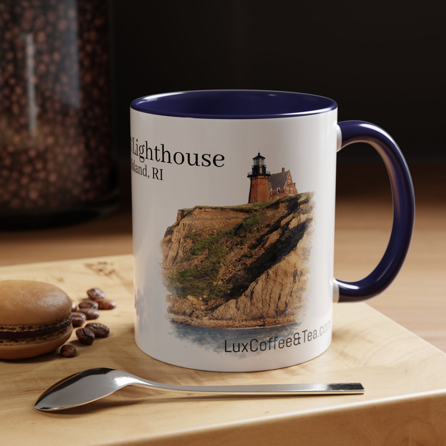 LUX Coffee and Tea Shorelines Southeast lighthouse Block Island, RI Accent Mug (11oz /15oz)