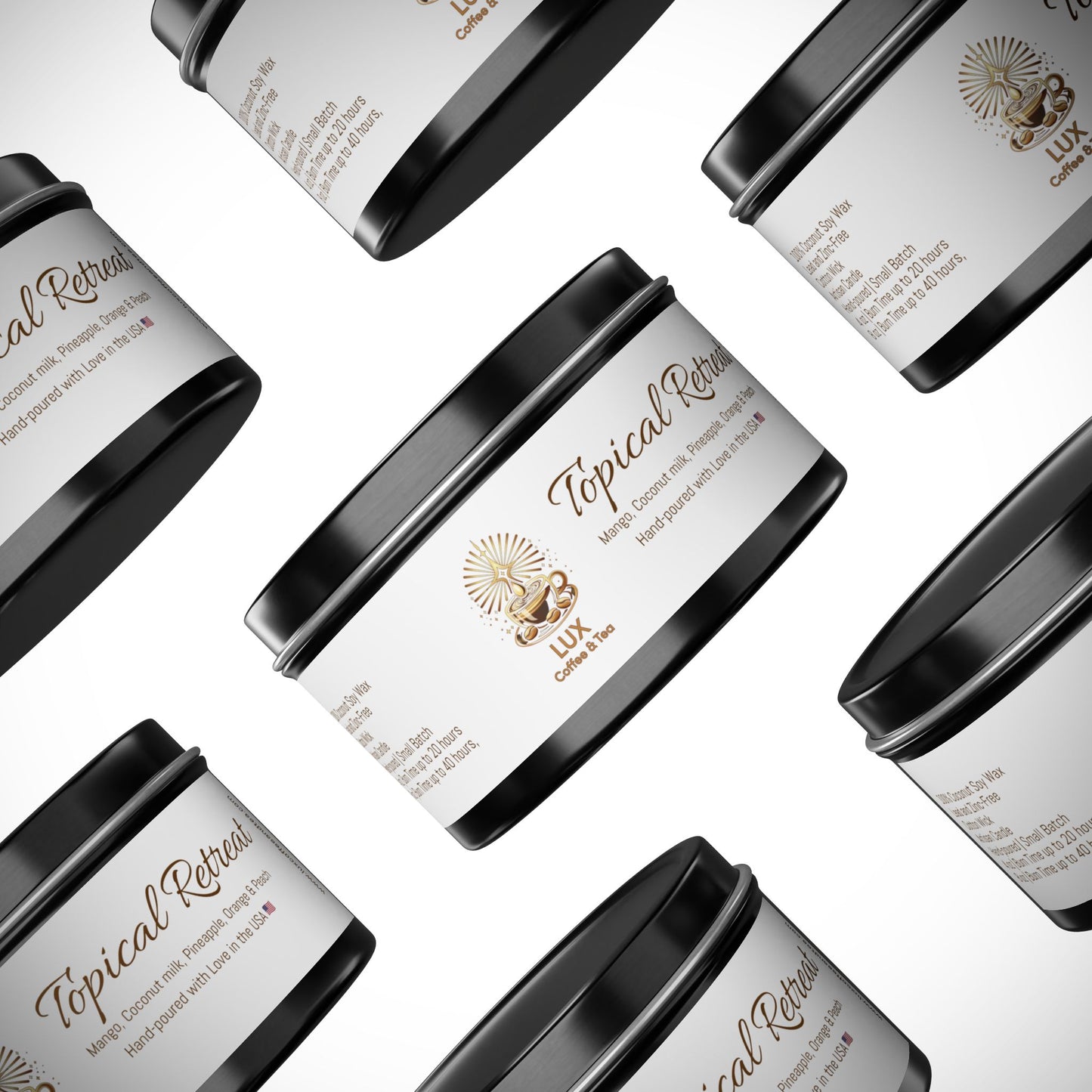 Lux Coffee & Tea Travel Tin Scented Candle Topical Retreat (4oz | 8oz).
