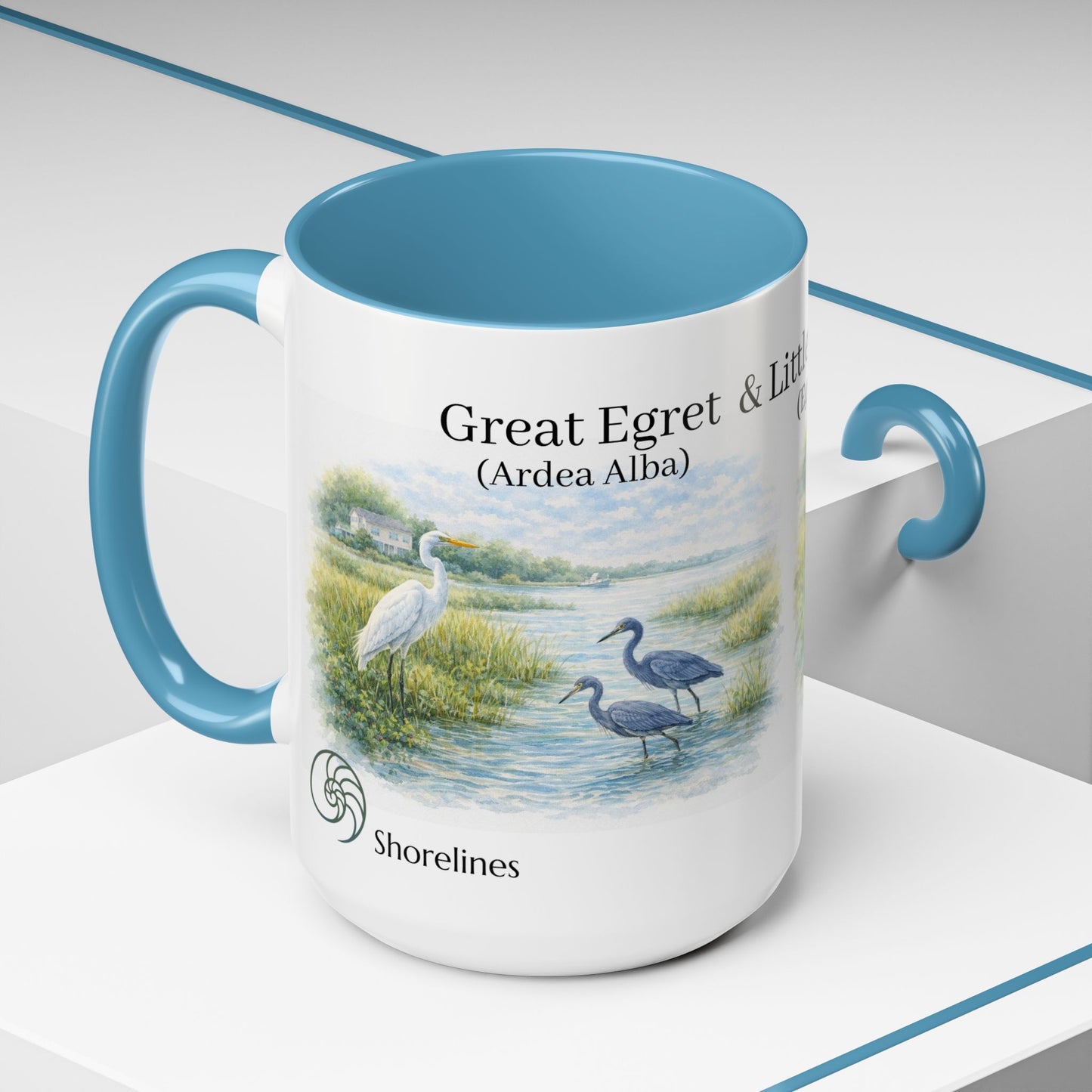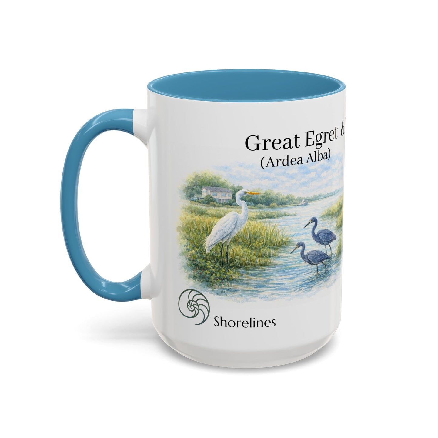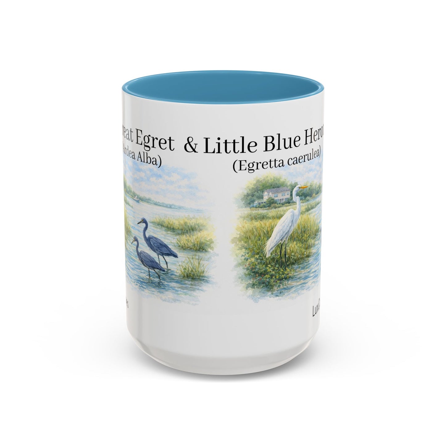 LUX Coffee and Tea Shorelines Great Egret (Ardea Alba) & 2 Little Blue Herons (Egretta caerulea) Accent Mug (11oz /15oz)