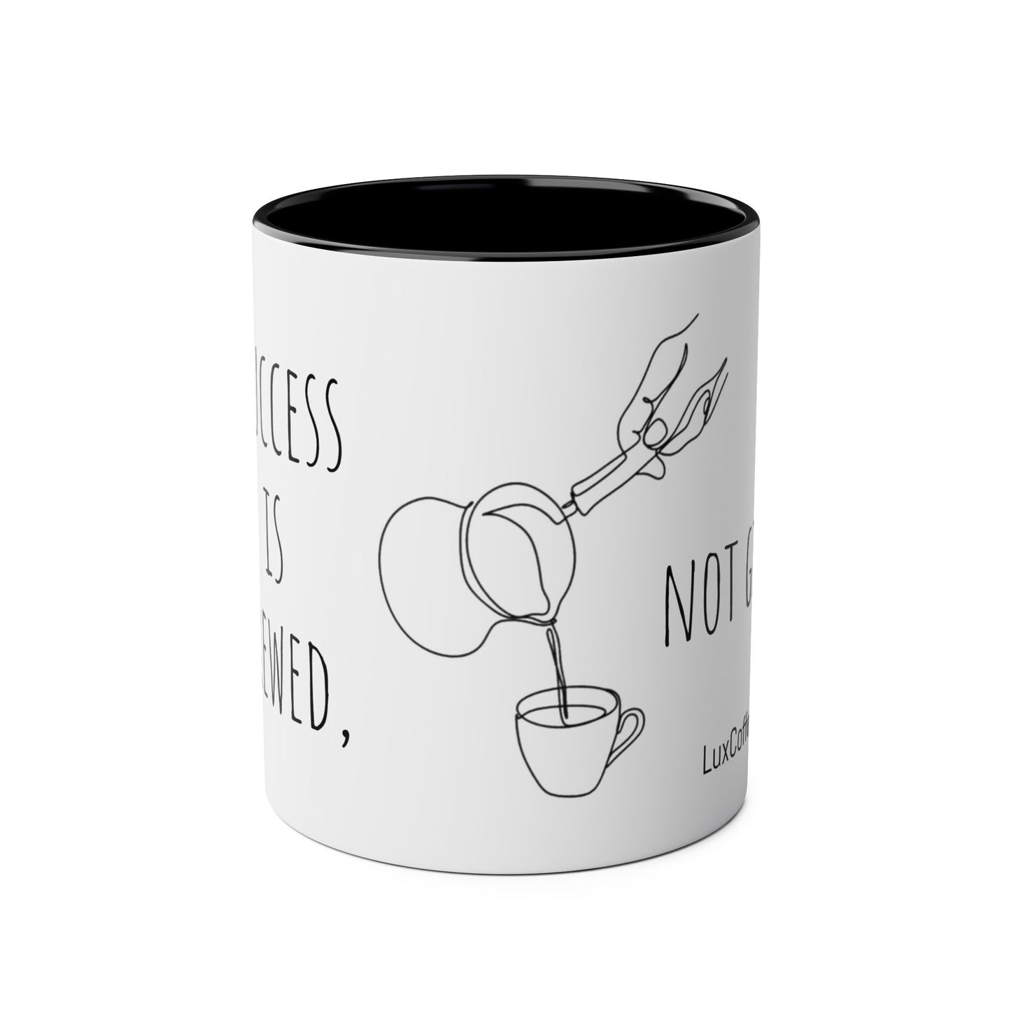 Lux Coffee & Tea - "Success is brewed, not given."-Two -Tone Coffee Mugs, 11oz