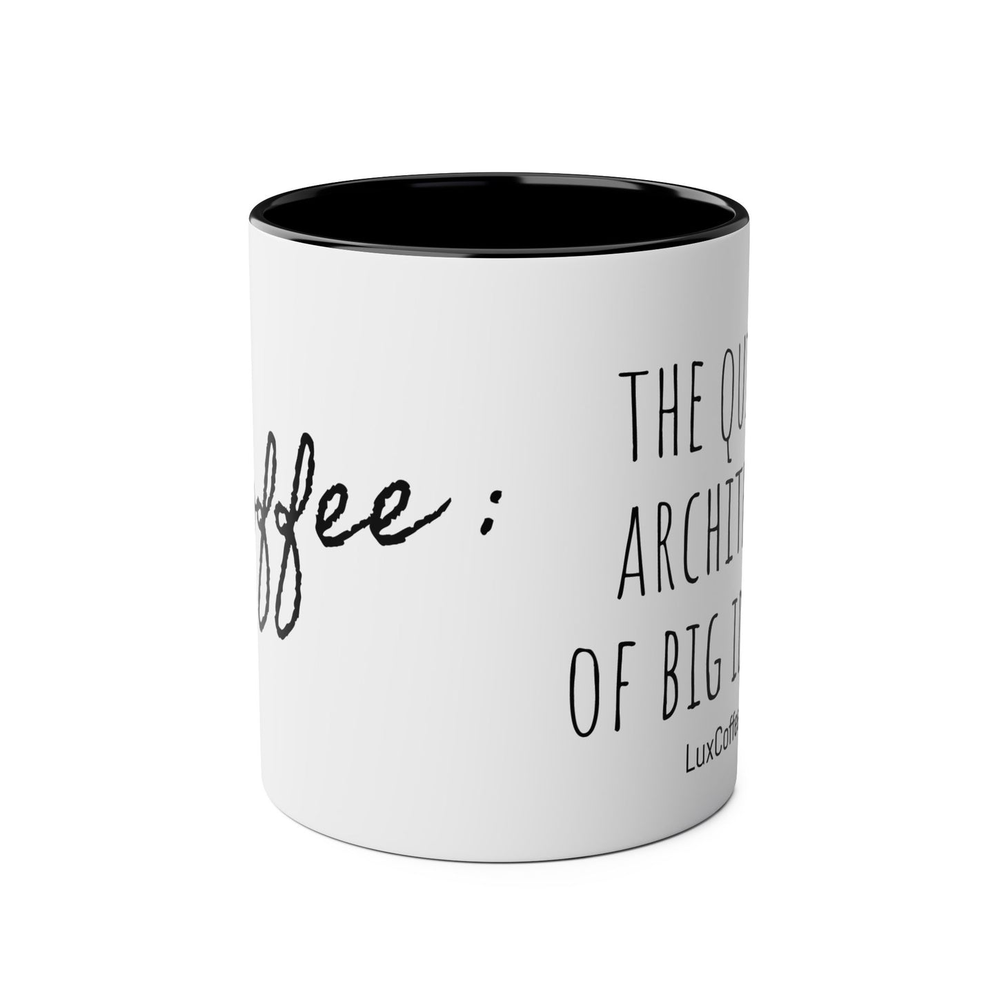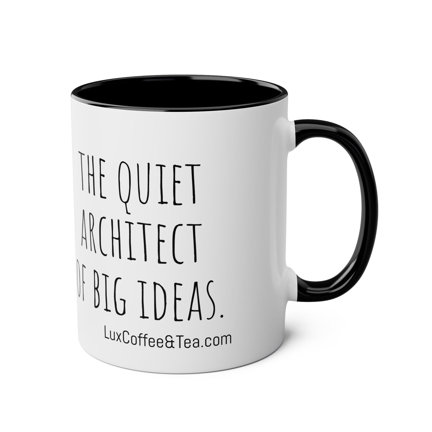 Lux Coffee & Tea - " the quiet architect of big ideas. "-Two -Tone Coffee Mugs, 11oz