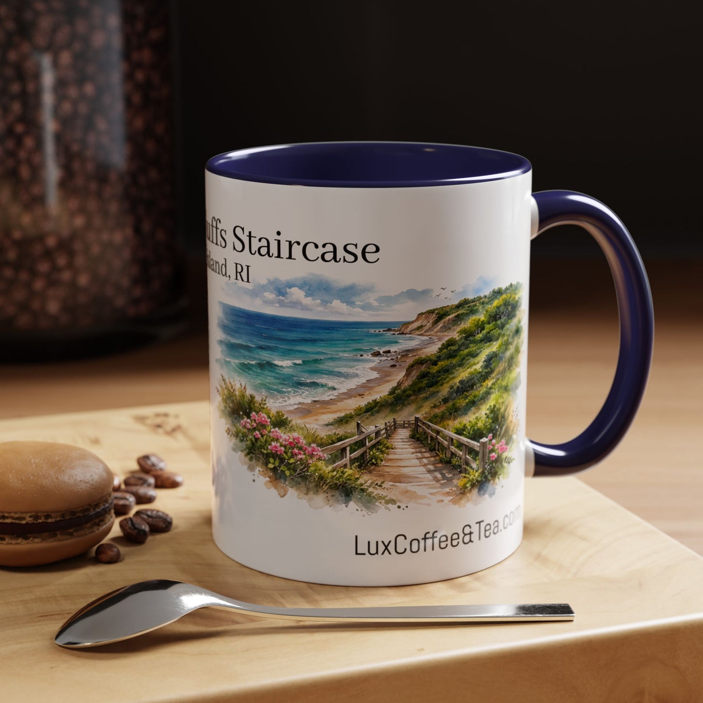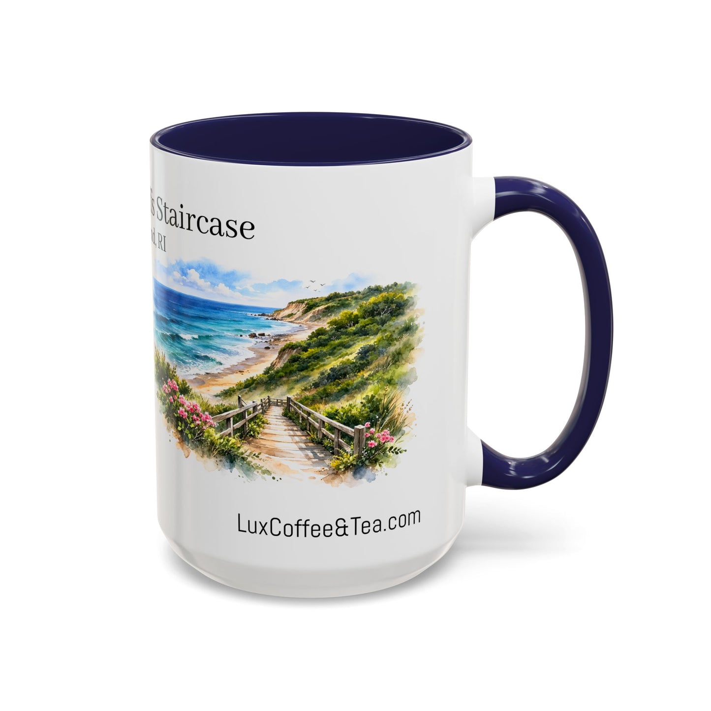 LUX Coffee and Tea Shorelines Mohegan Bluffs Staircase Block Island, RI Accent Mug (11oz /15oz)