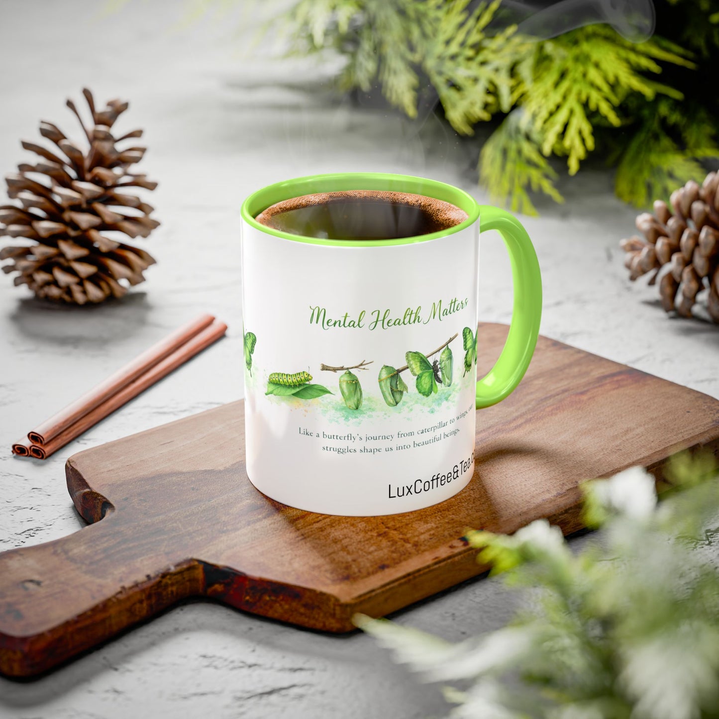 LUX Coffee and Tea Caterpillar to Wings Mental Health Awareness Accent Mug (11/15oz)