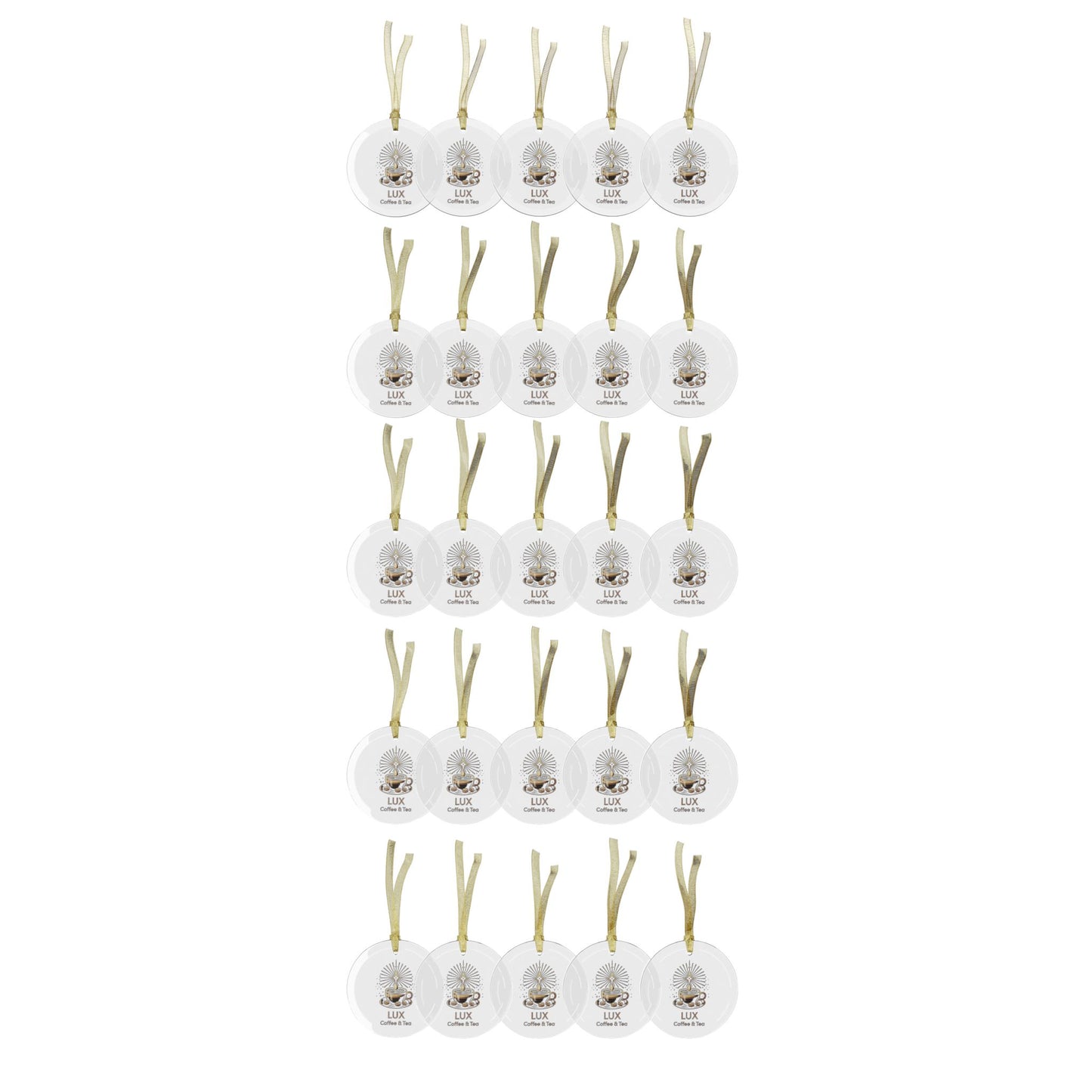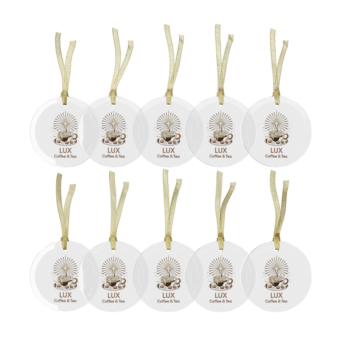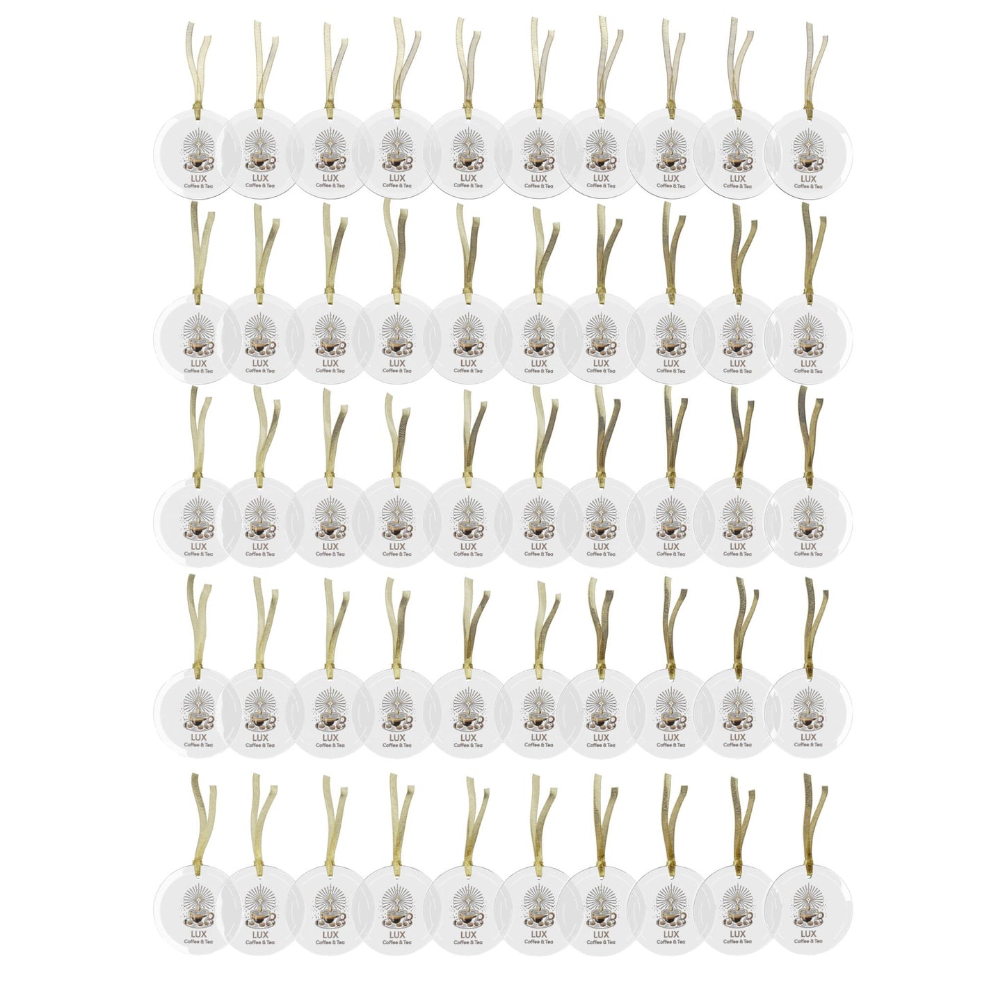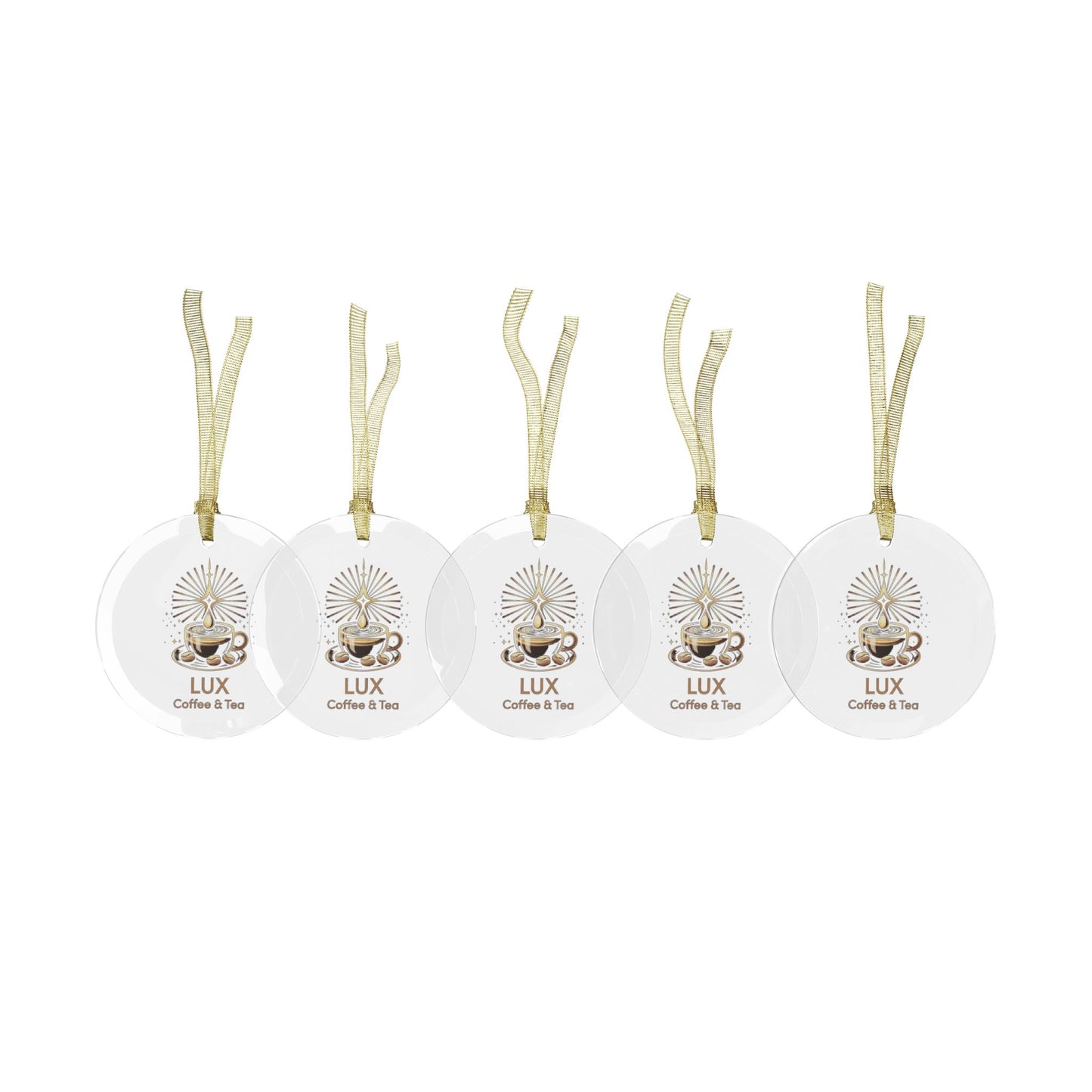 Create stunning decorations with our Lux Coffee & Tea glass ornaments. Available in 1, 5, 10, 25, and 50-piece bundles, you can satisfy all decorating needs for your customers. All ornaments are 100% glass, one size (3.5"/ 88.9mm), and come with beveled edges and a gold ribbon for that extra flair.