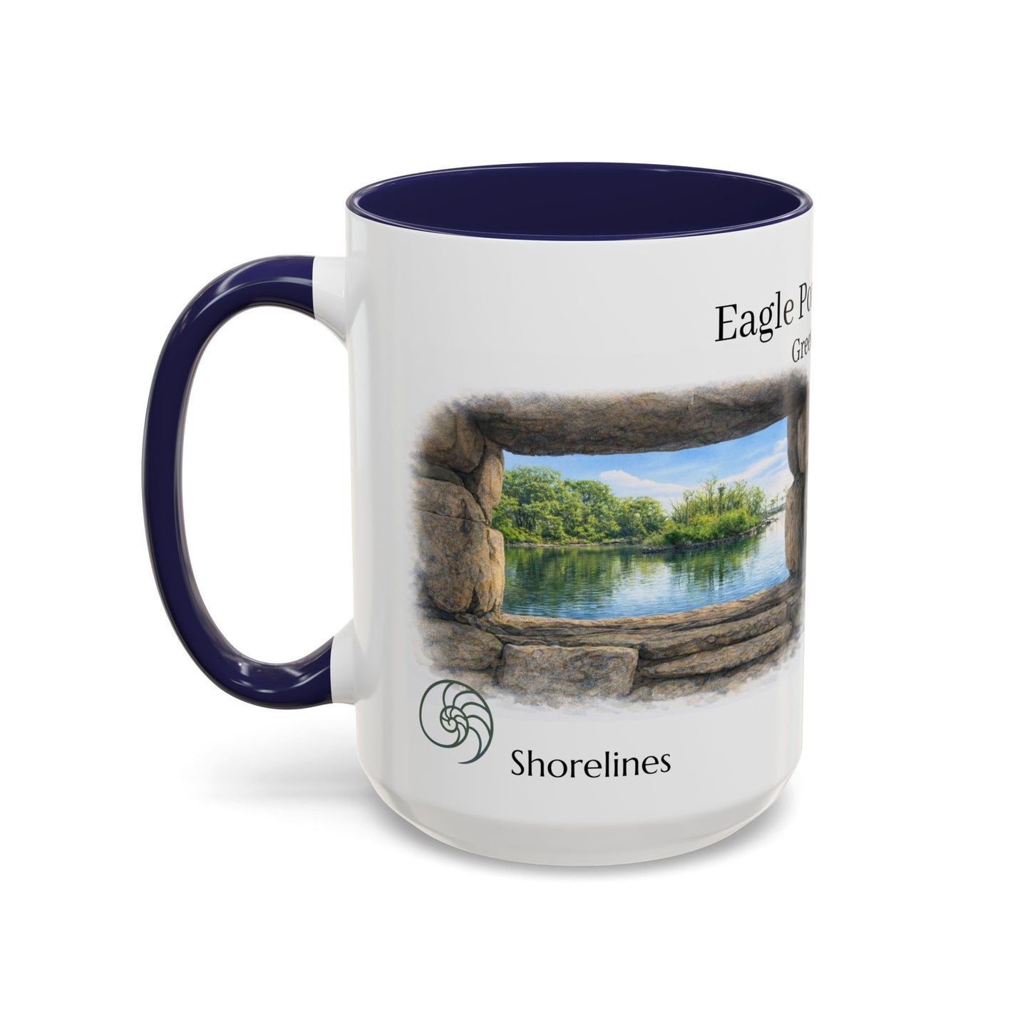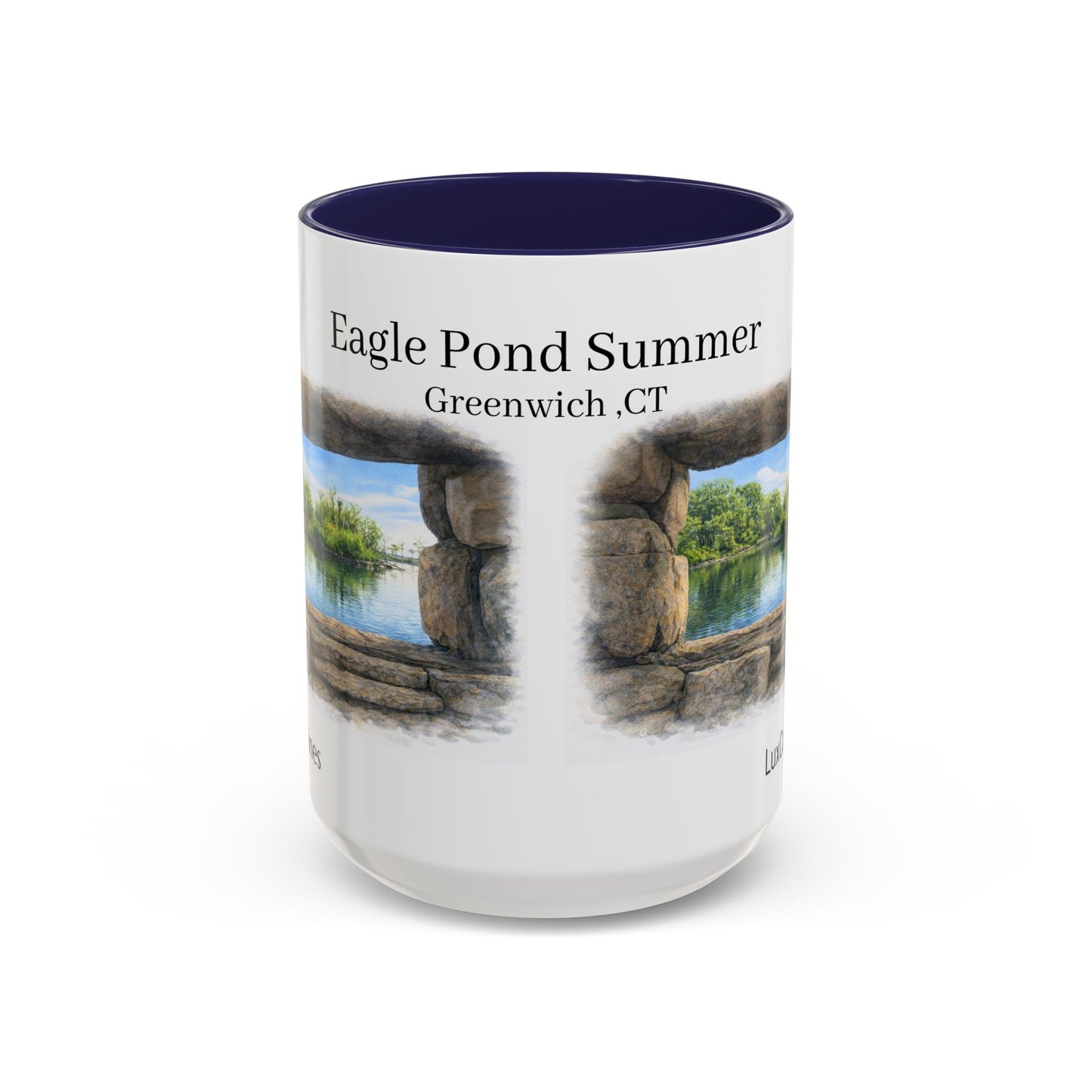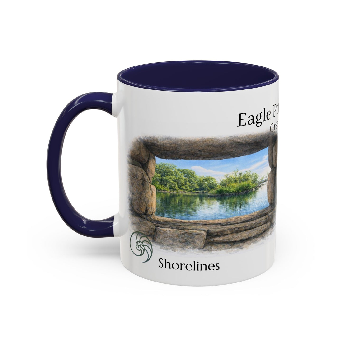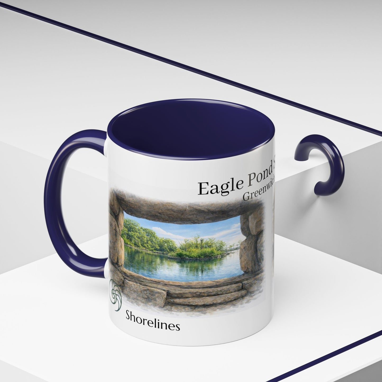 This ceramic accent mug brings quiet strength to every sip. Dedicated to Eagle Pond at Tod's Point Park in Greenwich ,CT.