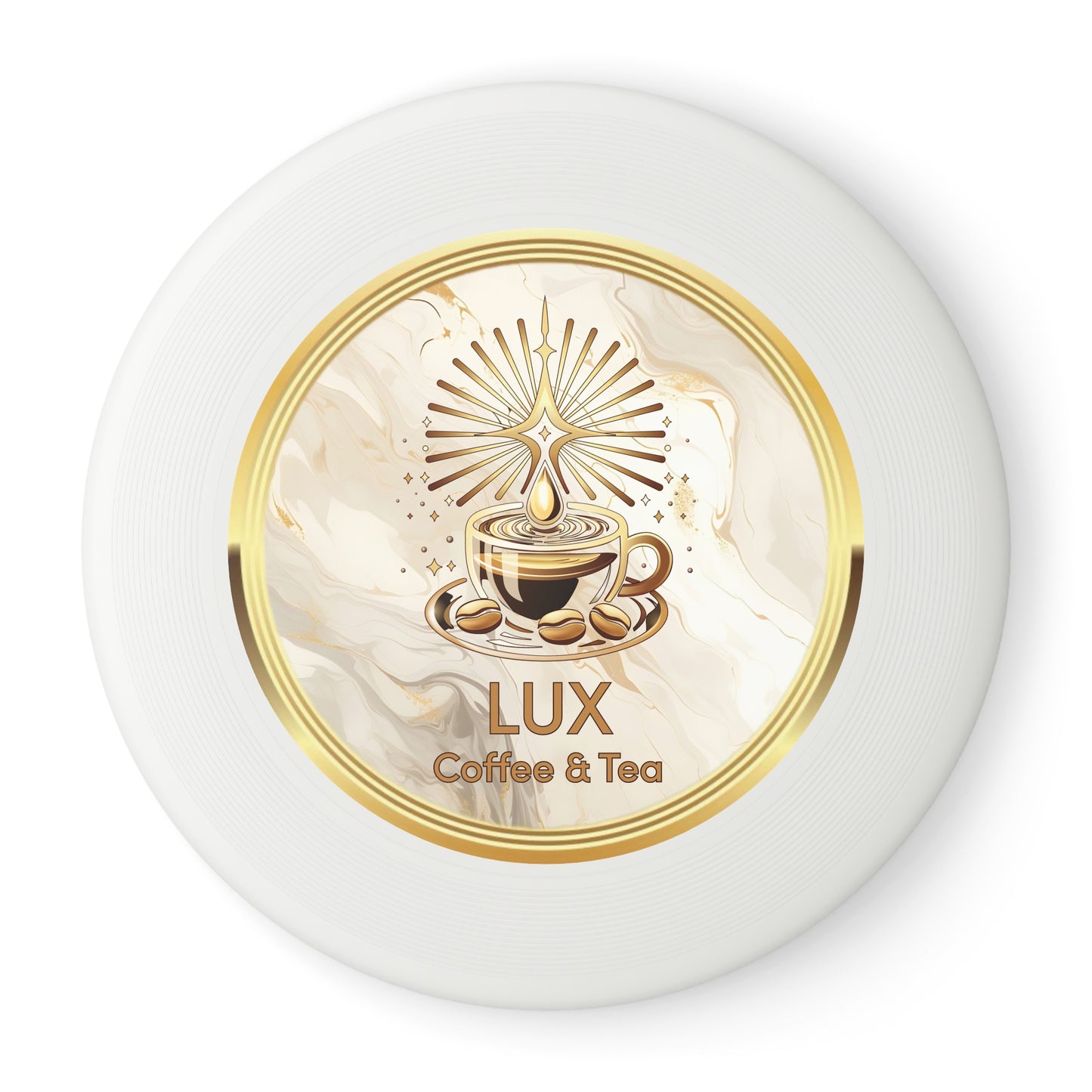 A sleek, lightweight flying disc that brings a touch of refined style to casual park days and outdoor meetups. The durable plastic body holds a bold printed center with our elegant LUX coffee & tea emblem framed in gold—so your disc stands out in flight and on the grass. It feels balanced in the hand, glides smoothly, and adds a playful, artful accent to friendly games, coffee-shop gatherings, or brand promotions that want a tasteful twist.